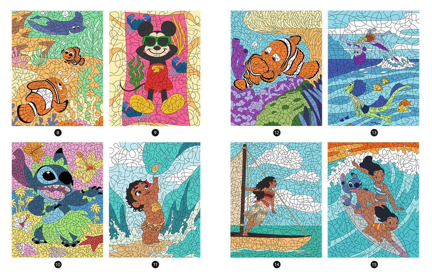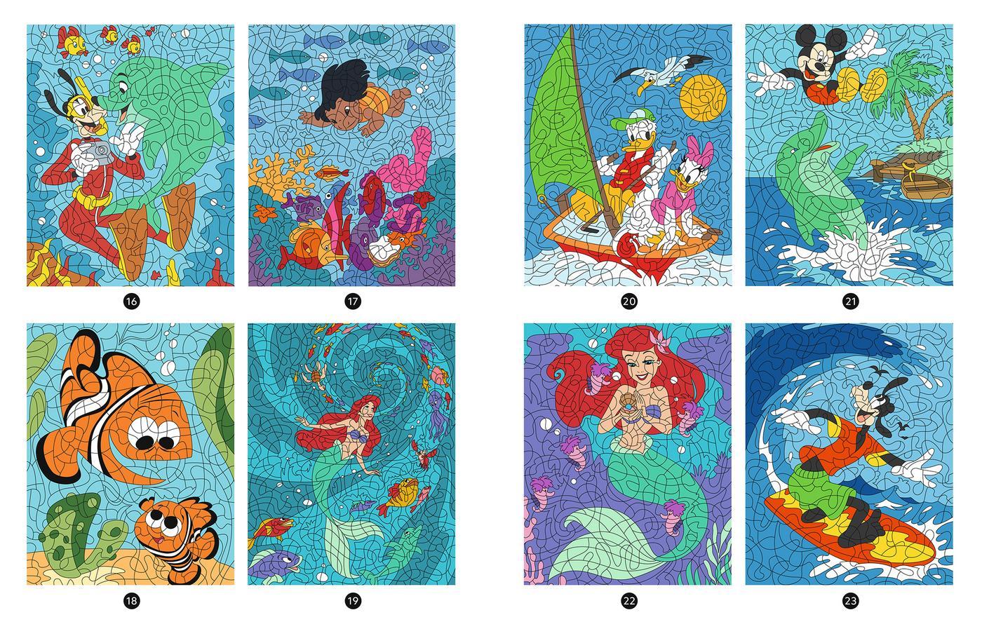 Každý z 23 obrázků skrývá překvapení – stačí vybarvit podle čísel a odhalíš kouzelné scény s Lilo, Stitch, Ariel a dalšími hrdiny. 💙