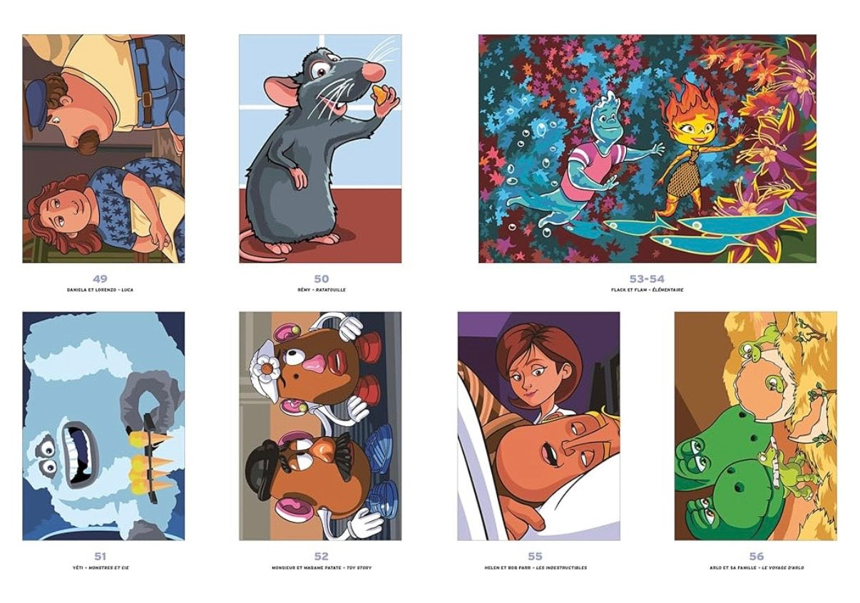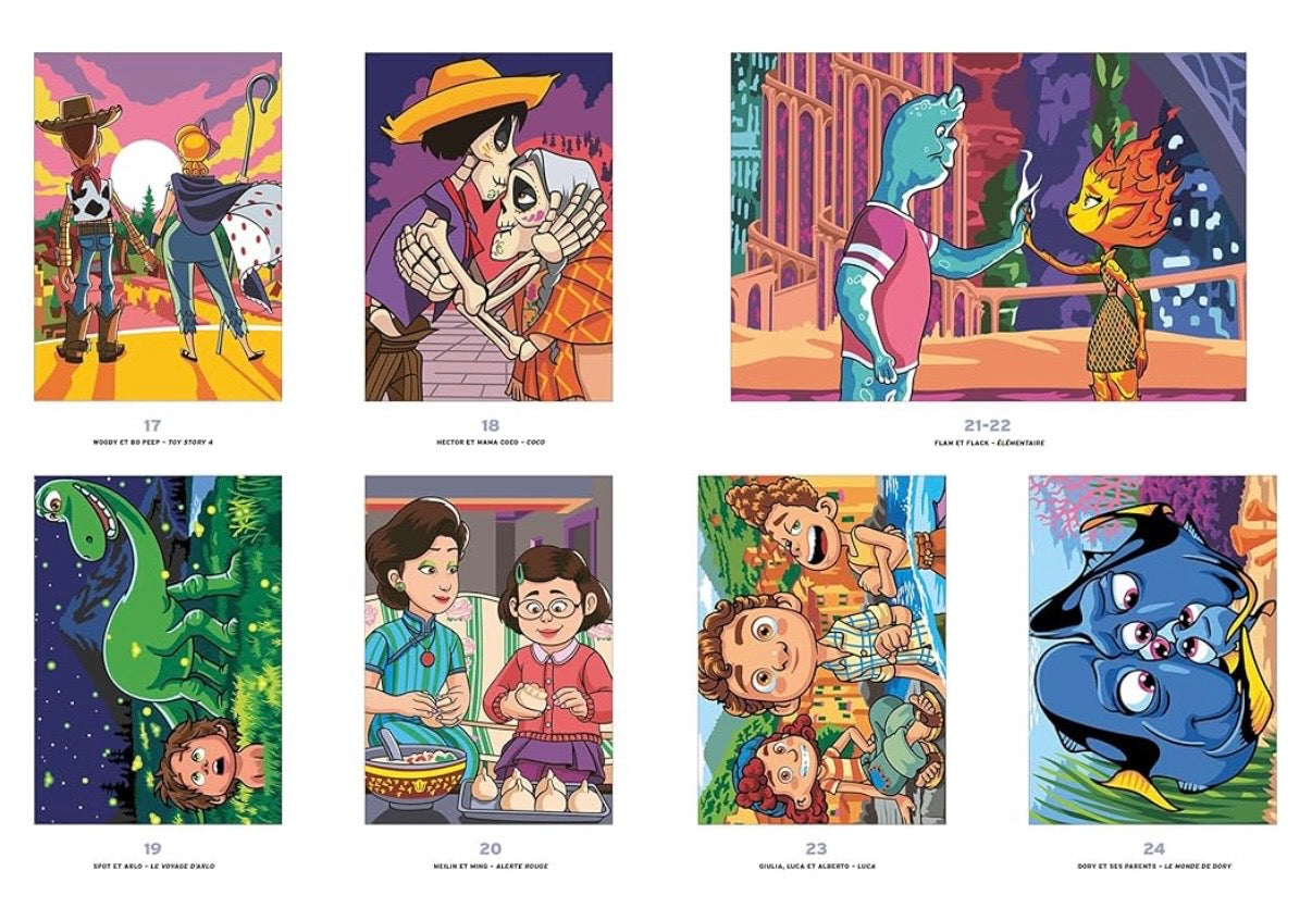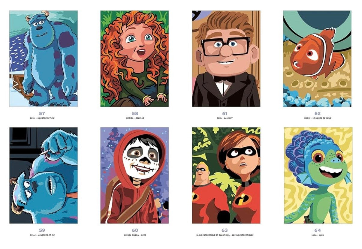 Tato omalovánka obsahuje 100 detailních ilustrací inspirovaných slavnými animovanými filmy. Každý obrázek odhalujete postupným vybarvováním podle barevných polí – výsledkem je překvapivá plnobarevná scéna.